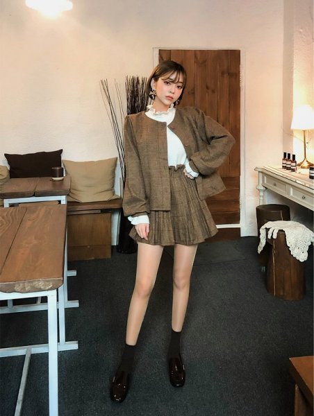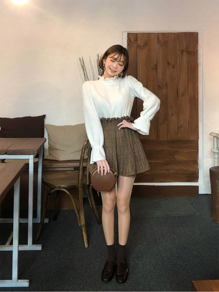 Bạn đã quá chán chân váy dài và muốn mình trẻ trung và năng động hơn? Hãy thử chân váy ngắn và áo len cổ cao thử nhé!( Nguồn: Chuu.com)