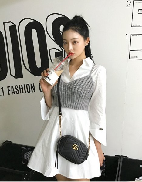 Chán quần, chán chân váy! Đừng lo, croptop len còn kết hợp được với đầm sơ mi trắng nhé!(Nguồn: Chuu.com)