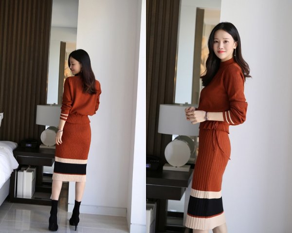 Diện nguyên cây kết hợp với áo sơ mi được cách điệu chính là style được ưa chuộng nhất hiện nay. Vừa thanh lịch vừa nhẹ nhàng , hiện đại và vừa giúp che đi những khuyết điểm trên cơ thể ( Nguồn:chuu.com)Cam đất kết hợp với chất liệu len tạo nên sự nổi bật nhưng vẫn giữ được vẻ thanh lịch chào đón năm mới. Điểm nhấn ở eo tạo cảm giác sexy nhưng vẫn không quá phản cảm, rất thích hợp cho những nàng muốn khoe trọn 3 vòng của cơ thể