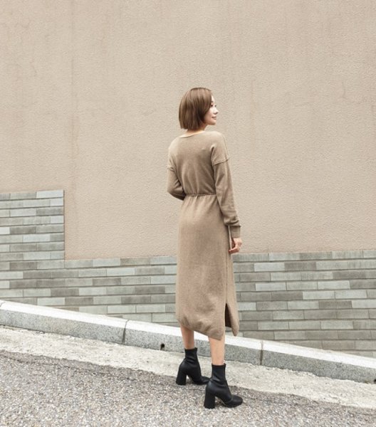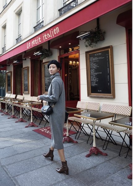 Váy liền kết hợp boots có thể nói là 1 trong những cách phối đồ nhanh dành cho những cô nàng lười ( Nguồn: www.shezgood.com)Ngoài váy liền và boots, chúng ta có thể thêm phụ kiện nhữ mũ, túi xách hay nhữn đôi bông tai be bé xinh xinh để trở nên xinh đẹp và cuốn hút hơn