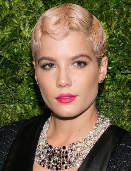 Dù mái tóc ngắn quá cỡ, nhưng Halsey vẫn chọn màu tóc sâm banh thời thượng cho mình. (nguồn: topsimages.com)