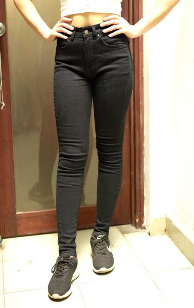 Khi mặc: - Đúng như cảm nhận khi cầm, lúc mặc lên cũng đúng như mặc quần vải, thậm chí còn thoải mái hơn rất nhiều, mặc dù quần ôm nhưng vì thun dãn mạnh nên dễ chịu cực kỳ. Đặc biệt là phần đũng quần, mặc không hề bị căng, cộm. - Các đường may chạy bên hông cũng rất êm, mặc cả ngày rồi vẫn không bị hằn lên da. - Quần thun dãn khá nhiều, với vòng 3 94 mà mình vẫn chỉ cần mặc size 28, mình cảm tưởng mông có to hơn thì mặc vẫn vừa ấy - Đặc biệt mặc lên quần tôn dáng lắm nhé, chân mình cảm thấy như được dài ra thêm chục phân, nếu đi thêm dày cao gót thì chắc chắn rất nhiều người sẽ tưởng là mình cao mét tám đó! - Nhược điểm: quần dễ bám bụi, nhưng phủi nhẹ là hết.