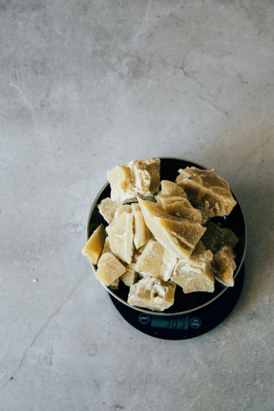 Chuẩn bị: Shea Butter (bơ hạt mỡ), sáp ong thiên nhiên, tinh dầu hạnh nhân, một lọ thủy tinh sạch.