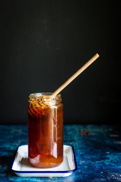 - Trộn đều mật ong và bột nghệ thành hỗn hợp hơi sệt, mịn