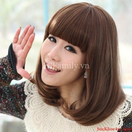 Bạn có thể kết hợp cùng kiểu mái chéo hay mái lưa thưa phủ trước trán để thêm nét xinh xắn cho gương mặt và kiều tóc của mình.