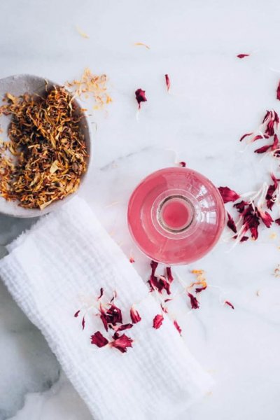 Trà dâm bụt có chứa hàm lượng vitamin C rất cao cùng nhiều khoáng chất cần thiết cho da. Cách làm toner nước cây phỉ và trà dâm bụt sẽ tạo thành hỗn hợp hoàn hảo giúp da chống lại tác hại của ánh nắng mặt trời, tia UVA, UVB và các dấu hiệu lão hóa da.