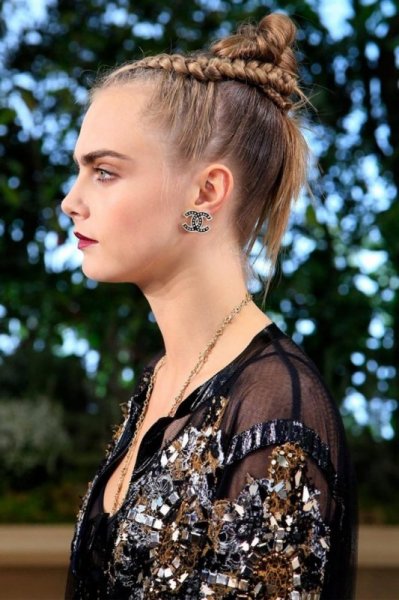 Cara Delevingne nổi bật tại SS16 Chanel Couture với bím tóc độc đáo.