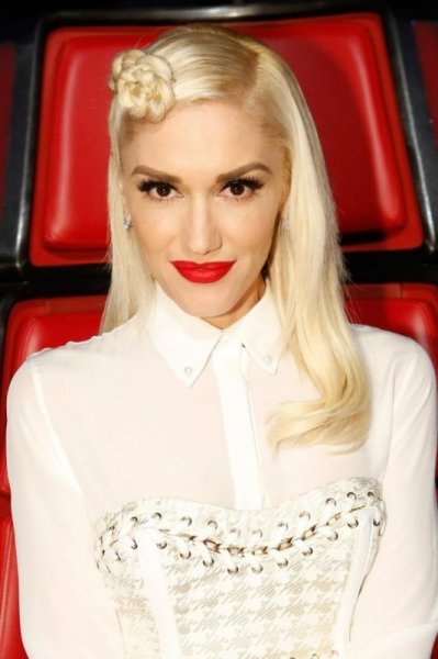 Gwen Stefani lại sử dụng bím tóc như chiếc nơ trang trí cho mái tóc vàng nổi bật.