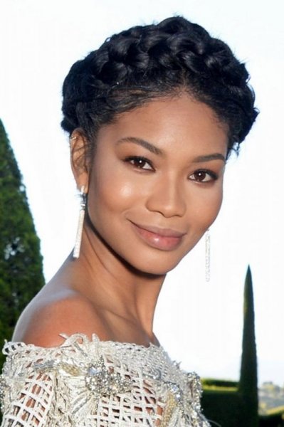 Chanel Iman rạng rỡ, quý phái với mái tóc tết nguyệt quế.