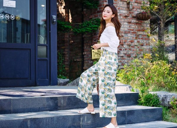 Có thể nói phối quần ống rộng với áo crop top là outfit dành cho các bạn theo phong cách quyến rũ, năng động. Nhưng còn những bạn theo phong cách nhẹ nhàng, “bánh bèo” thì sẽ phối quần ống rộng mặc với áo gì? Áo trễ vai kết hợp với quần ống rộng là một gợi ý khác khi bạn đang muốn kết hợp với quần dáng rộng. Áo trễ vai có hai loại là trễ và lệch vai hoặc trễ vai. Kiểu áo nào cũng gợi cảm và khoe bờ vai mịn màng của bạn, outfit này sẽ giúp bạn toát ra và tăng thêm được sự mềm mại của cơ thể. Khi áp dụng các công thức này, bạn sẽ không còn phải lo đến việc quần ống rộng mặc với áo gì thì đẹp.