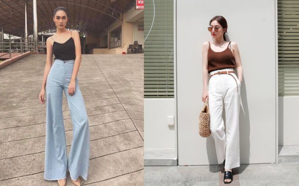 Quần ống rộng là item hack dáng cực kỳ hiệu quả, đây sẽ là set đồ yêu thích của mọi cô nàng, đặc biệt là các cô nàng có chiều cao khiêm tốn. Áo hai dây kết hợp với quần ống rộng là một trong các cách phối đồ cực sành điệu và phù hợp cho những ngày hè nóng nực.