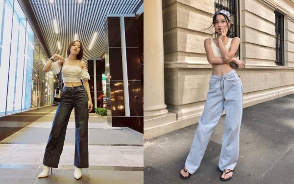 Quần ống rộng phối cùng áo trễ vai hoặc áo croptop