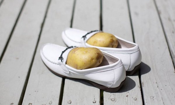 Làm rộng giày bằng khoai tây (Nguồn: nb.bbend.net)Tùy vào nhu cầu về mức độ giãn của đôi giày mà bạn có thể cân nhắc sử dụng 1 hay nhiều củ khoai tây. Đầu tiên, bạn gọt hết vỏ khoai và rửa sạch rồi để vào trong giày. Để vào phần gót hoặc mũi giày, tùy vị trí bạn muốn làm rộng. Sau 1 đêm bạn sẽ thấy sự khác biệt nhé.
