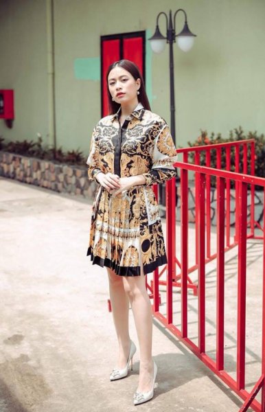 Mái tóc dài ngang vai được uốn lọn là kiểu tóc mà Hoàng Thuỳ Linh thường xuyên sử dụng.