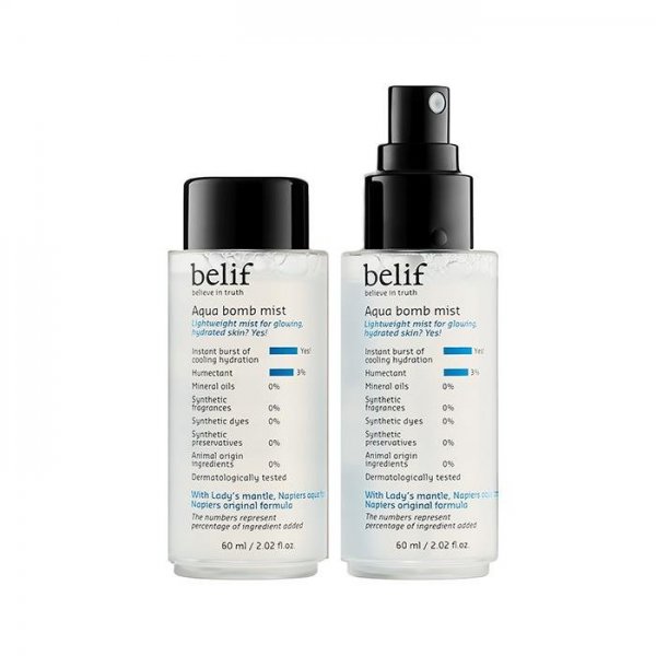 Cũng giống như các sản phẩm khác của nhà Belif, xịt khoáng này được làm từ các loại thảo mộc làm dịu. Với các thành phần chống viêm như chiết xuất cây chickweed và lady’s mantle. Xịt khoáng này sẽ là sản phẩm cần có trong thói quen chăm sóc da mùa hè của bạn.