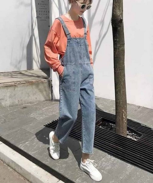 Áo dài tay kết hợp với quần yếm