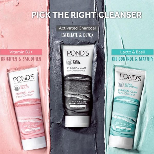 – Phù hợp loại da: Mọi loại da, bởi riêng dòng sản phẩm Sữa rửa mặt Pond’s Mineral Clay này cũng có đến 3 loại cho bạn thỏa thích chọn lựa: