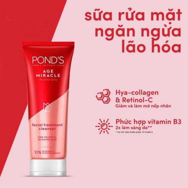 Sản phẩm kế tiếp nằm trong list những dòng sữa rửa mặt Pond’s hot nhất là Pond’s Age Miracle. Với công thức với phức hợp Retinol-C được nghiên cứu chuyên biệt, niềm khao khát sở hữu làm da “không tuổi” sẽ không có gì khó khăn nếu kiên trì sử dụng lâu dài.
