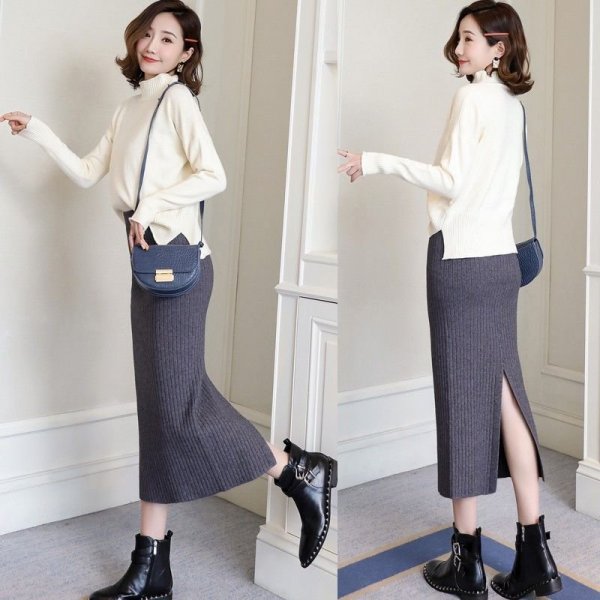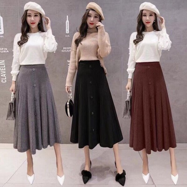 Chân váy len mặc với áo gì đẹp? – Chân váy len dài kết hợp với áo len nữ tính