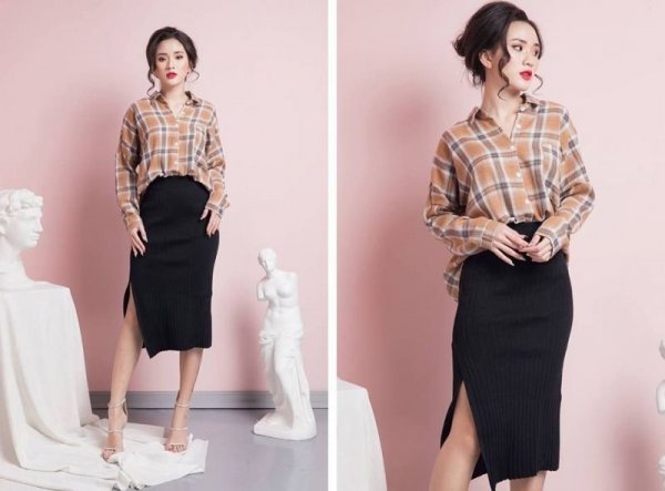 Chân váy len kết hợp với áo gì đẹp? Chân váy len mặc với áo sơ mi