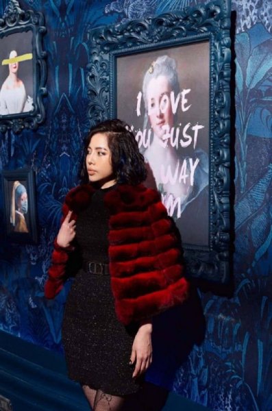 Mix đồ với váy len body và áo khoác lông vô cùng sang chảnh