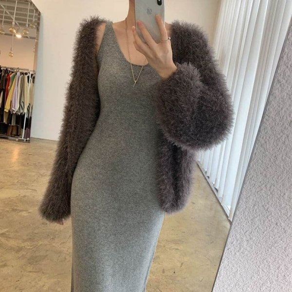 Một cách mix đồ với váy len body giúp các nàng quyến rũ hơn rất nhiều đó chính là kết hợp váy 2 dây cùng với áo khoác mỏng cùng màu. Đừng vội “coi thường” nhé vì cách mix đơn giản này khéo léo giúp bạn khoe xương quai xanh quyến rũ cùng với đôi vai sexy của mình một cách tế nhị đấy. Nhẹ nhàng mà tinh tế đó là những gì mà cặp đôi này mang đến cho phái đẹp của chúng mình. Chọn 1 chiếc áo len mỏng, phối thêm túi xách cùng tone là bạn đã có vẻ ngoài rất xịn rồi nhé. Ngoài ra, có thể che được khuyết điểm bắp tay to cho các nàng đó nha.