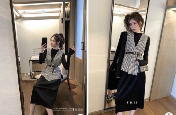 Váy len body dáng dài kết hợp với áo gì nếu như bạn đã thử tất cả những cách ở trên và muốn tìm sự mới mẻ? Vậy thì chọn mix với áo gile nhé. Thêm một chiếc thắt lưng đơn giản và 1 chiếc túi mini size để giúp mình trông thon gọn hơn thôi nào.