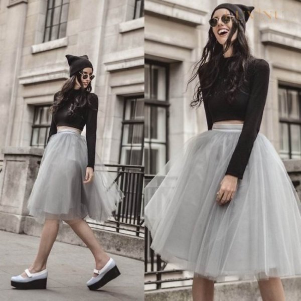 Ngày hôm nay áo len mặc với chân váy xòe bồng bềnh giúp nàng trở thành một cô gái tiểu thư sang chảnh và thời thượng. Ngày hôm sau đã lại trở thành cô nàng cá tính khi kết hợp chân váy xòe và áo len crop top. Chạm đến đỉnh của sự bí ẩn đó là khi mix chân váy xòe bồng bềnh cùng áo len ống và khoác nhẹ chiếc Denim trên vai.