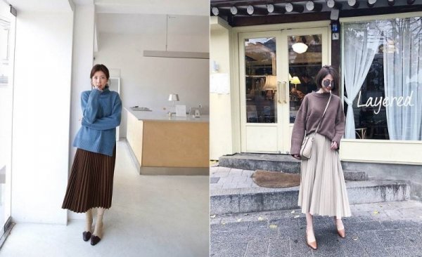 Nếu để chọn ra một item mang đến sự yểu điệu và duyên dáng khi mix áo len với chân váy xòe thì đó chắc chắn phải là chân váy xòe dài xếp ly thướt tha.