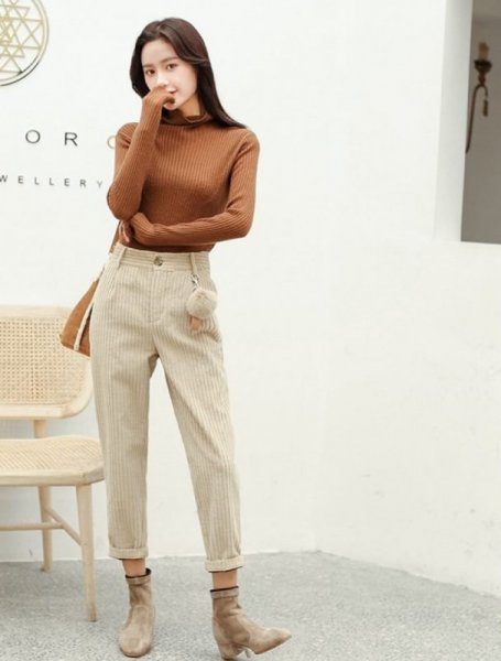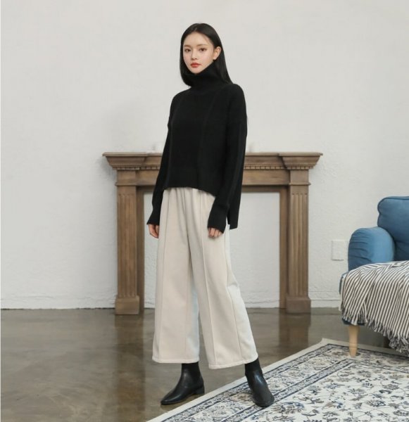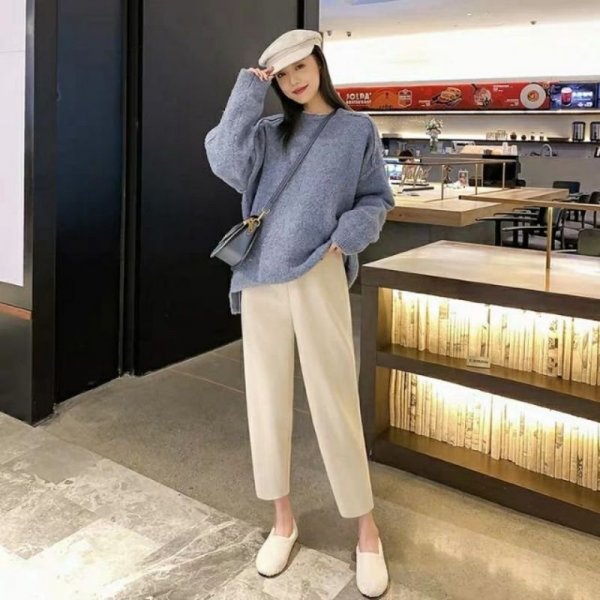 Nếu vẫn chưa biết áo len kết hợp với quần gì cho sành điệu nhất thì một gợi ý tuyệt vời dành cho bạn nữa là thay thế quần jeans bằng quần ống suông. Vì cả 2 cách mix này đều cho hiệu quả ngang nhau hết nhé! Quần ống suông sẽ giúp bạn hack dáng tài tình, tạo cảm giác rộng rãi, thoải mái nên được nhiều chị em dễ dàng lựa chọn. Ngoài ra quần ống suông lại mềm mại hơn quần jean rất thích hợp cho các bạn nữ mê phong cách bánh bèo sang chảnh. Bạn có thể sơ vin áo len để tạo cảm giác chân thon dài hơn. Ngoài ra, bạn đừng quên kết hợp thêm ankle boots hoặc sneaker để giúp set đồ thêm hoàn hảo nhé.