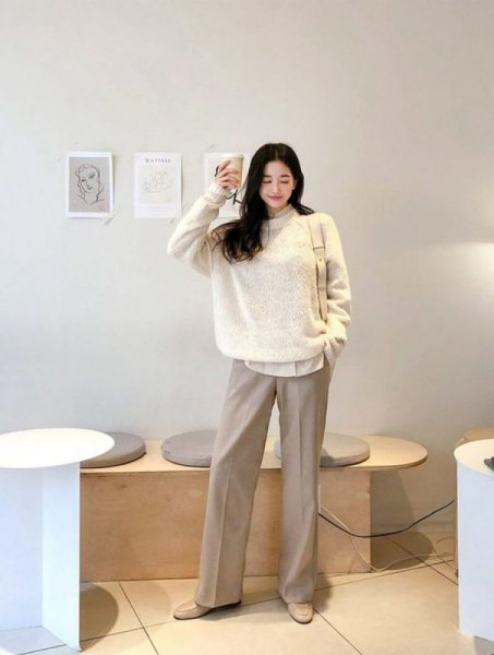 Áo len kết hợp với quần ống suông cùng tông màu hack dáng hiệu quả. (Ảnh: tuoitreplus.com)