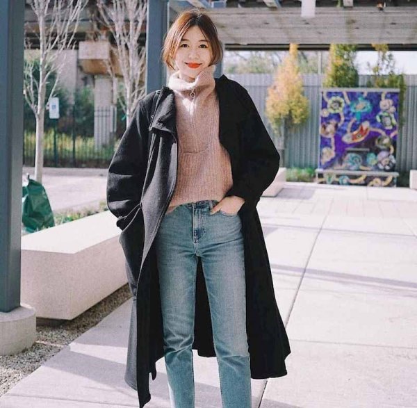 Set đồ đậm chất mùa đông nhất là đây chứ đâu. Gợi ý cho nàng trong cách phối đồ mùa đông với quần jean và áo dạ thật sang chảnh và đúng chất fashionista là hãy chọn quần jean xanh và áo dạ màu trầm nhé. Nhưng nếu là một “thợ pha màu” có nghề thì nàng muốn mix quần jean cùng áo dạ màu gì cũng sẽ “chất” thôi. Biến hóa một chút nhờ cách phối đồ với quần jean ống suông mùa đông và áo dạ để set đồ không bị nhàm chán nàng nhé.