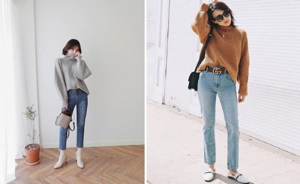 Thử lên đồ cùng với quần jean ống rộng và áo len để thay đổi hình ảnh bản thân nhé (ảnh: kenh14.vn)