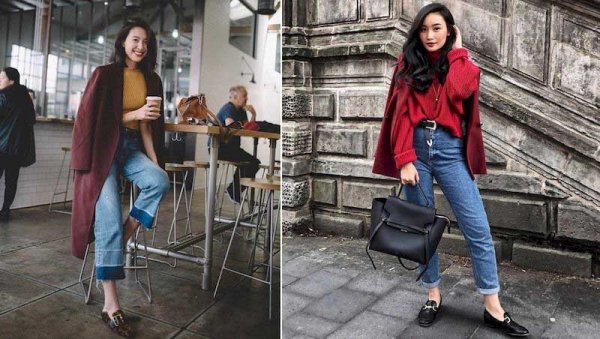 Cách phối đồ “kinh điển” giữa quần jean và áo len là công thức mà nàng nào cũng nắm trong lòng bàn tay rồi ấy chứ. Nhưng thay vì cứ diện mãi kiểu quần skinny jeans thì các nàng cũng có thể thử đổi sang mix quần jean ống rộng mùa đông trông sẽ phóng khoáng hơn đấy. Nếu không thì chọn quần jean baggy cũng rất cá tính. Đừng quên bổ sung cả phụ kiện là túi xách và giày nữa đấy nhé.