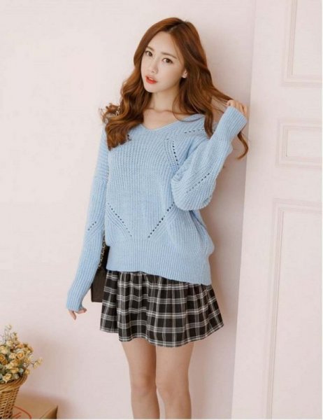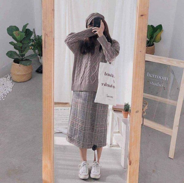 Sự kết hợp giữa áo len và chân váy ngắn vô cùng nhẹ nhàng, nữ tính sẽ giúp bạn nổi bật và thu hút mọi ánh nhìn xung quanh. Đây là phong cách thời trang nữ mùa đông phổ biến được các cô gái Hàn lựa chọn. Với cách mix đồ mùa đông nữ theo phong cách Hàn Quốc street style này bạn sẽ trông vô cùng năng động. Kết hợp thêm áo khoác bên ngoài cùng đôi giày oxford để tăng độ dễ thương bạn nhé.