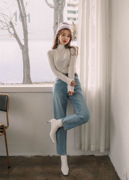 Để toát lên vẻ trẻ trung, năng động và cá tính thì bạn hãy thử mix boot cổ thấp với một chiếc quần jean ống rộng và sơ vin áo len cao cổ nhé. Với cách phối đồ này đảm bảo bạn sẽ hack được vài tuổi đó. Outfit này mà diện đến trường trong những ngày lạnh là bao chất luôn nè.
