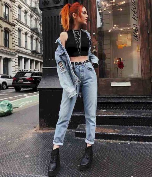 Đây là một trong những cách phối đồ với giày boot nữ cổ ngắn thời trang mà các cô nàng mang phong cách cá tính và mạnh mẽ không thể bỏ qua. Vào những ngày tiết trời thoáng mát, việc diện một outfit cool ngầu như thế này xuống phố sẽ giúp bạn hút trọn ánh nhìn của mọi người. Để tăng thêm độ hoàn hảo cho set đồ, bạn hãy lựa chọn cho mình một chiếc boot có phần đế platform dây buộc nhé.