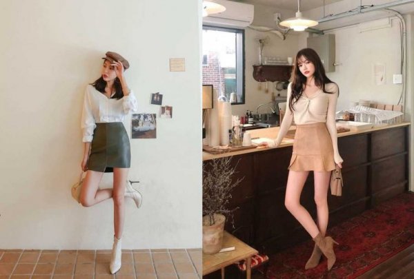 Với outfit chân váy ngắn và boot cổ ngắn, nếu bạn sơ vin thì nhìn tổng thể trông sẽ gọn gàng và năng động hơn rất nhiều đấy.
