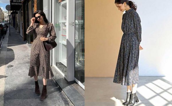 Mix giày bốt nữ cổ ngắn với váy dài liền thân