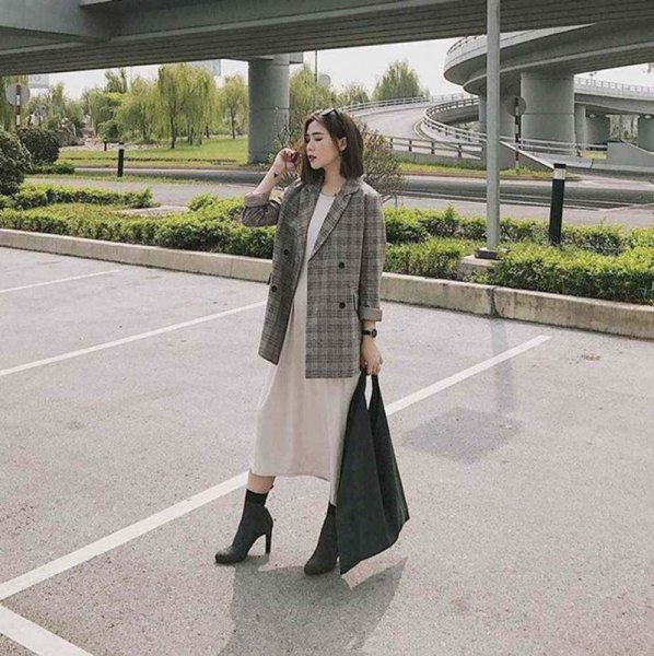 Một cách mix đồ với boot cổ ngắn cao gót nữ tính mà bạn không nên bỏ qua chính là sự kết hợp cùng váy dài liền thân. Những chiếc váy có điểm một chút họa tiết hay váy dài basic đều có thể mix cùng bốt cổ thấp. Với set đồ này trông nàng vô cùng ngọt ngào nhưng cũng không kém phần cá tính.