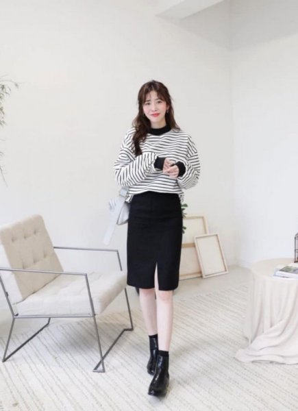Cách phối đồ với boot cổ ngắn đế bệt cùng chân váy midi