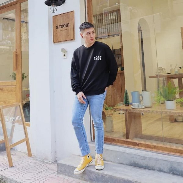 Quần jean phối với áo sweater nam trẻ trung, cool ngầu