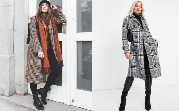 Phối váy liền cùng áo khoác dạ kẻ caro