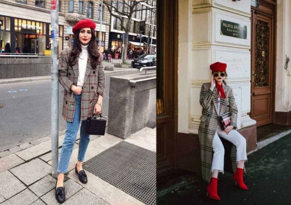 Quần jeans là item “thần thánh” khi có thể biến tấu với rất nhiều loại trang phục khác nhau và cũng là item luôn có sẵn trong tủ đồ của các nàng. Nếu nàng muốn outfit của mình “chanh sả” hơn một chút, hãy mix áo dạ kẻ caro cùng một chiếc quần jeans cắt gấu phối cùng sweater ôm dáng bên trong hoặc 1 chiếc áo len cổ lọ cũng rất hợp. Mũ len nồi và bốt cổ ngắn cao gót có cùng tông màu sáng cũng tạo nên điểm nhấn nổi bật cho set đồ. Với kiểu phối này bạn sẽ ra dáng 1 cô gái Pháp vintage sành điệu đấy.