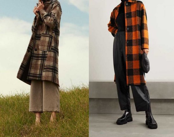 Phối đồ với quần ống rộng và áo dạ kẻ caro