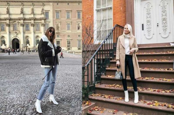 Phối đồ với boot trắng cổ thấp và quần jean