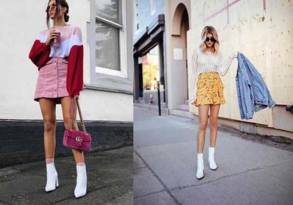 Những cô nàng nấm lùn sẽ đặc biệt yêu thích set đồ chân váy ngắn phối cùng boot trắng. Đây là outfit có khả năng hack dáng hiệu quả, khoe khéo đôi chân thon gọn của nàng và đặc biệt tạo cảm giác thoải mái khi đi dạo phố hay cafe cùng bạn bè. Nàng có thể mix thêm một chiếc áo len sơ vin cùng với chân váy để hợp thời tiết thu đông nhé.