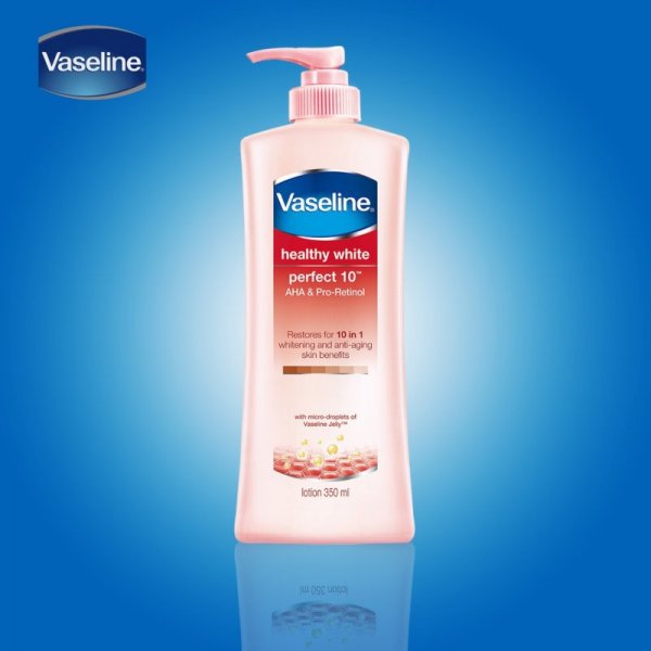 Sữa dưỡng thể trắng da Vaseline Healthy White Perfect 10 là một dạng kem dưỡng trắng da toàn thân với thành phần chính là AHA & Pro-Retinol. Sản phẩm giúp nuôi dưỡng làn da sáng mịn bằng khả năng loại bỏ tế bào chết, kích thích sản xuất collagen và giảm thiểu vết nhăn.