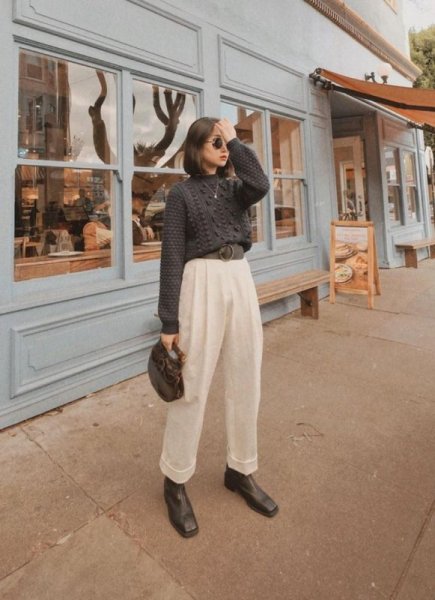 Giày boot kết hợp quần ống rộng sẽ tạo nên set trang phục thu đông khá thú vị đấy nhé. Vừa năng động lại vừa thanh lịch, chính là kết quả từ cách phối đồ với chelsea boots nữ này đem lại. Với set đồ hơi lạ mắt này cũng rất phù hợp để diện đi làm chốn công sở hay dạo phố cùng bạn bè. Bạn có thể phối cùng với áo thun, áo sơ mi kiểu hay áo hai dây tùy phong cách mà mình yêu thích.