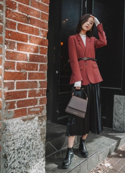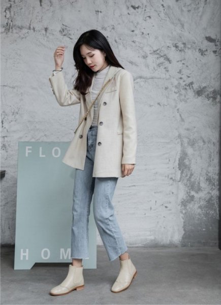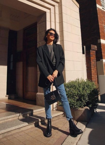 Phối giày chelsea boots nữ với áo khoác blazer